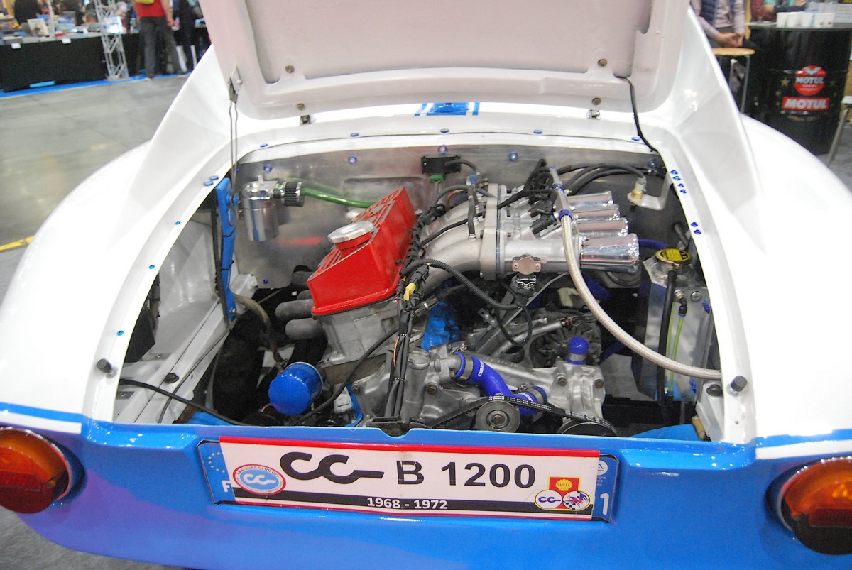 - Le coupé B1200S tout aussi fraîchement restauré et tout juste sortie du garage d’Alain VINCENT, de couleur verte métallisée, teinte absolument d’origine, présenté sur la rampe inclinée